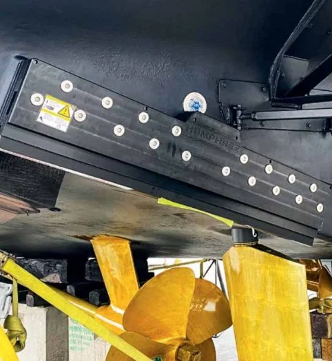 One of the projects was a 16-year-old, 27m Johnson motor yacht, recently imported from the United States. The hydraulics in the conventional blade trim tabs needed replacement, but when that was priced up, it wasn’t going to cost a lot more to replace the tabs entirely with a Humphree Interceptor system – and improve the boat’s performance at the same time, Jackson says. The Humphree units for this boat are 1500mm long, and can be paired with Humphree electronically-controlled fin stablisers.